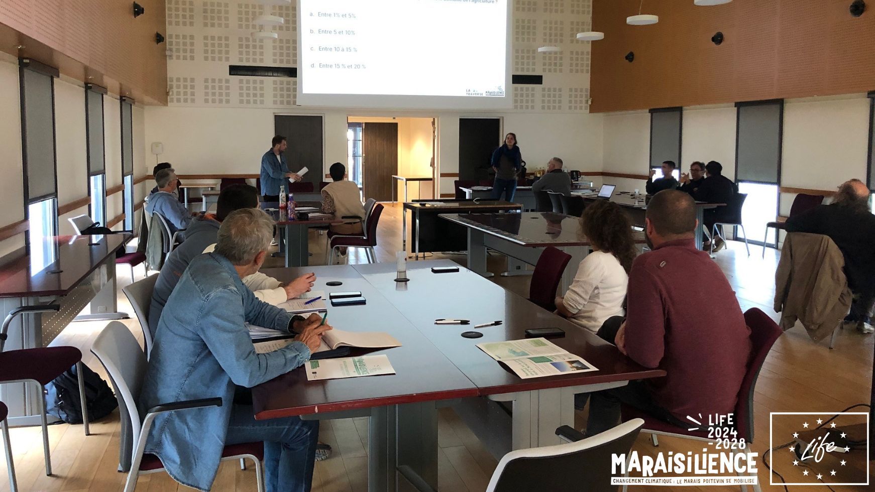 Dans le cadre du projet LIFE Maraisilience, La Traverse a accompagné 6 EPCI du Marais Poitevin dans l’animation d’un cycle de 16 ateliers de scénarisation des futurs. L’objectif : ouvrir des espaces de dialogue pour imaginer avec les acteurs les trajectoires possibles du territoire à l’horizon 2050 en matière d’adaptation au changement climatique.
